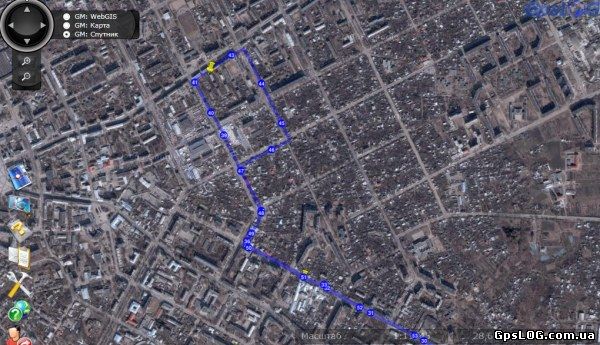 Пример отображения трека с использованием сервиса "Google Maps" Спутник